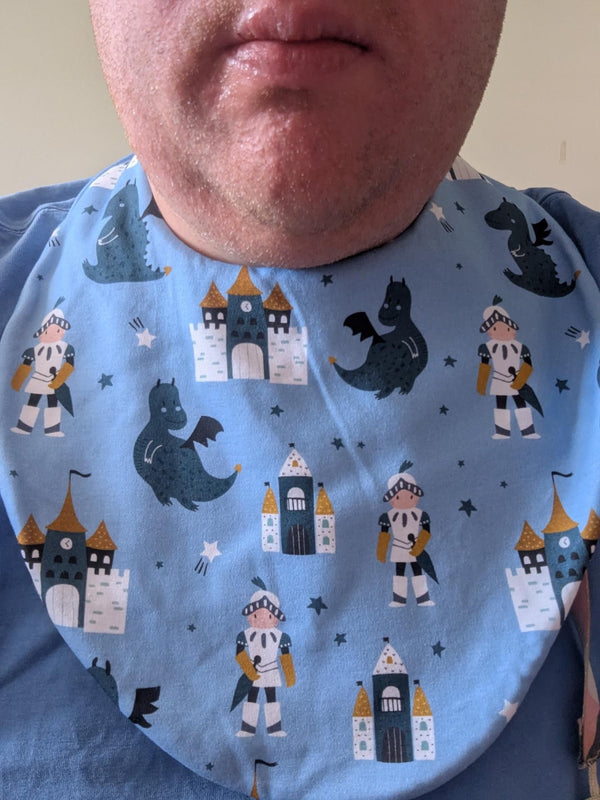 Get ready for an epic battle against dribble rash with our Knights Bib! Featuring a knights and dragon theme, this award-winning bib has a waterproof backing and superior absorbency for maximum protection. Its anti dribble rash shape and size adjustable design make it perfect for teething babies. Protect your little one with style and functionality.
