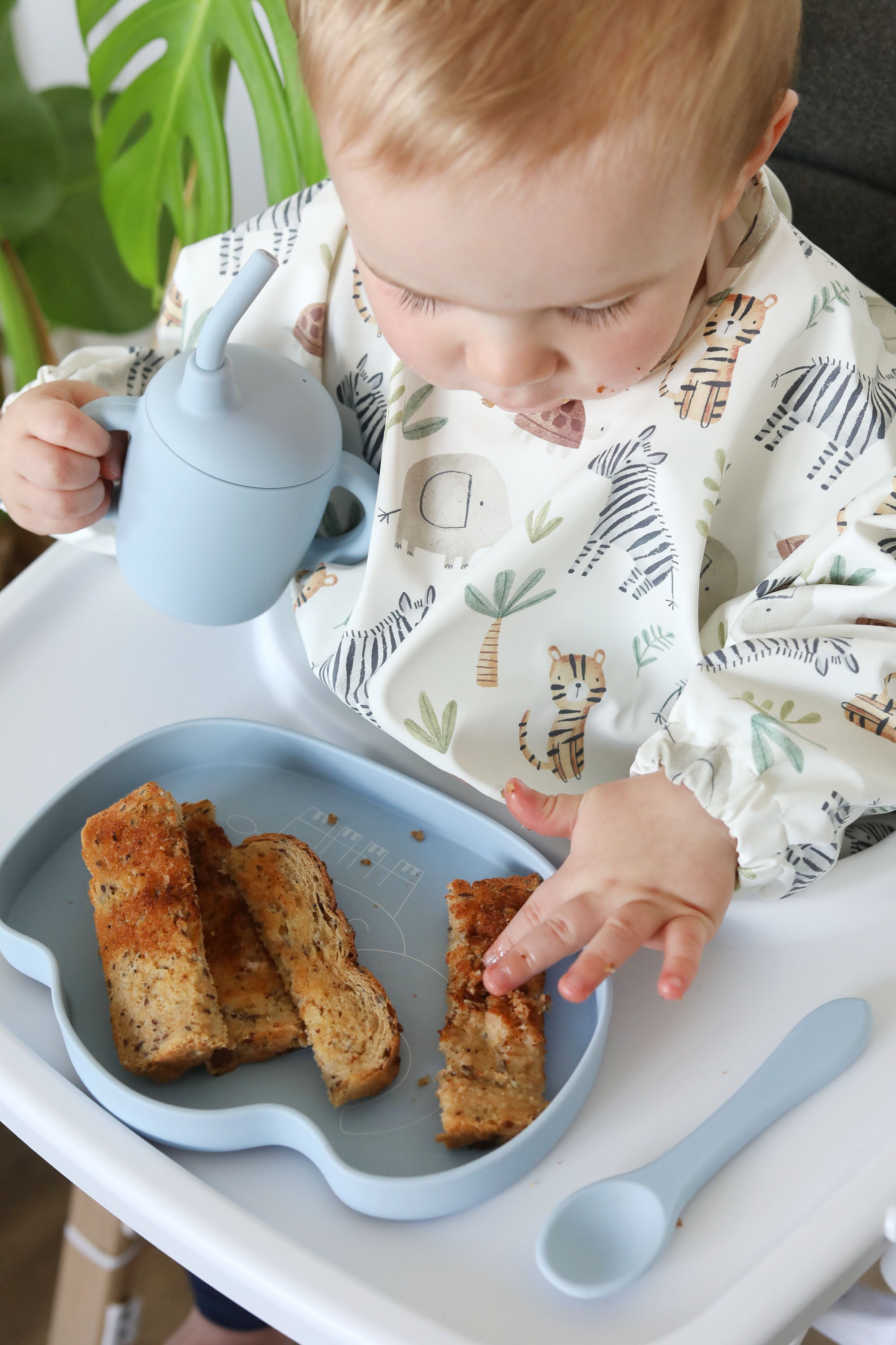Whether you’re introducing first tastes or encouraging independent eating, this silicone feeding set grows with your child. The weaning plate encourages space for balanced meals, while the bowl keeps food where it belongs – in the bowl, not on the floor!