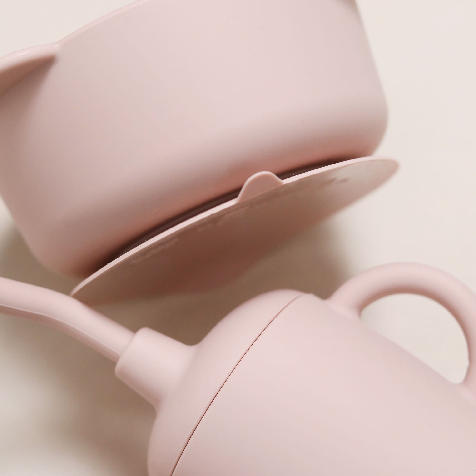 • 1 adorable pink teddy bear ears suction bowl – a deep silicone bowl with suction base, perfect for purées, cereals, or finger foods.