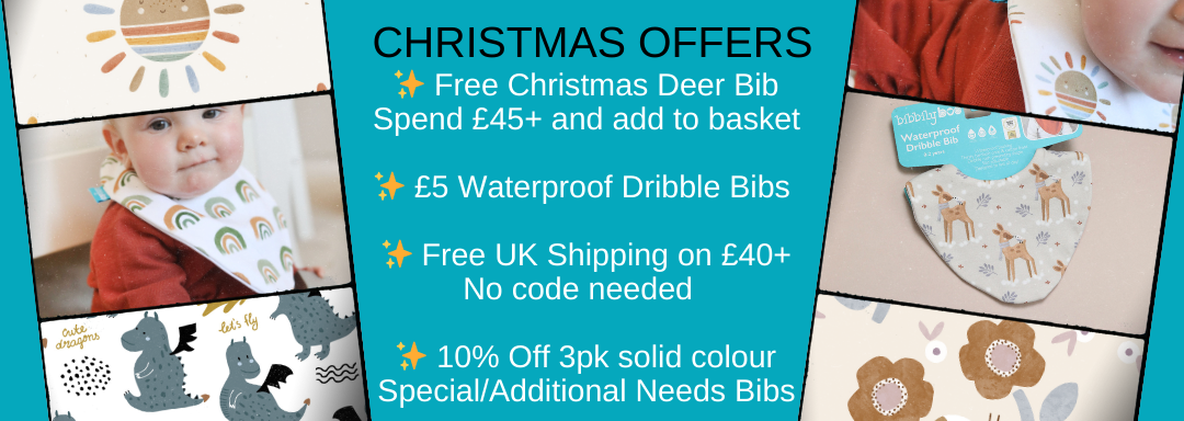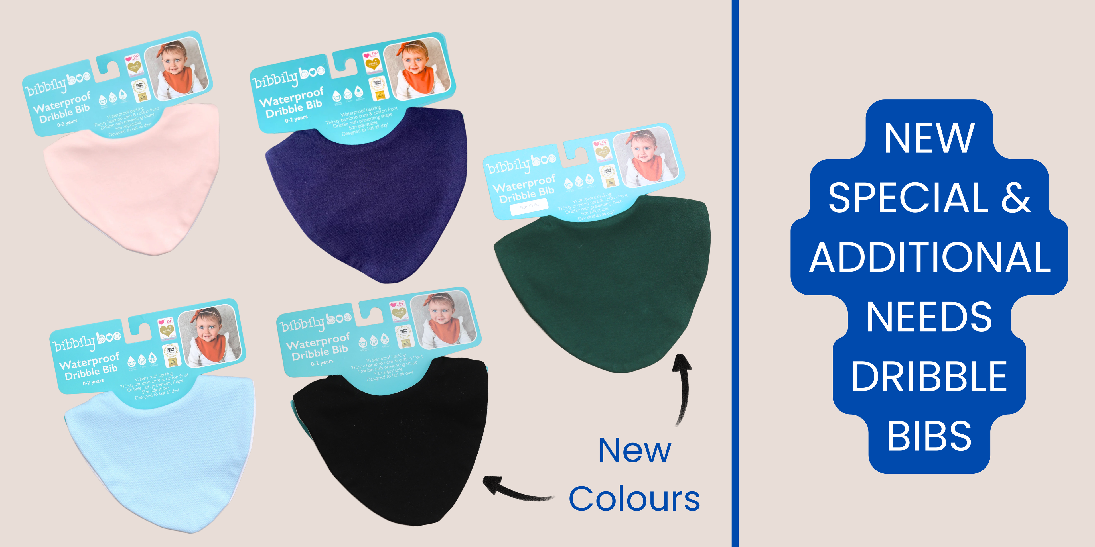 award winning dribble bibs designed to keep teething babies and people with special and additional needs, of all ages; dry and rash free