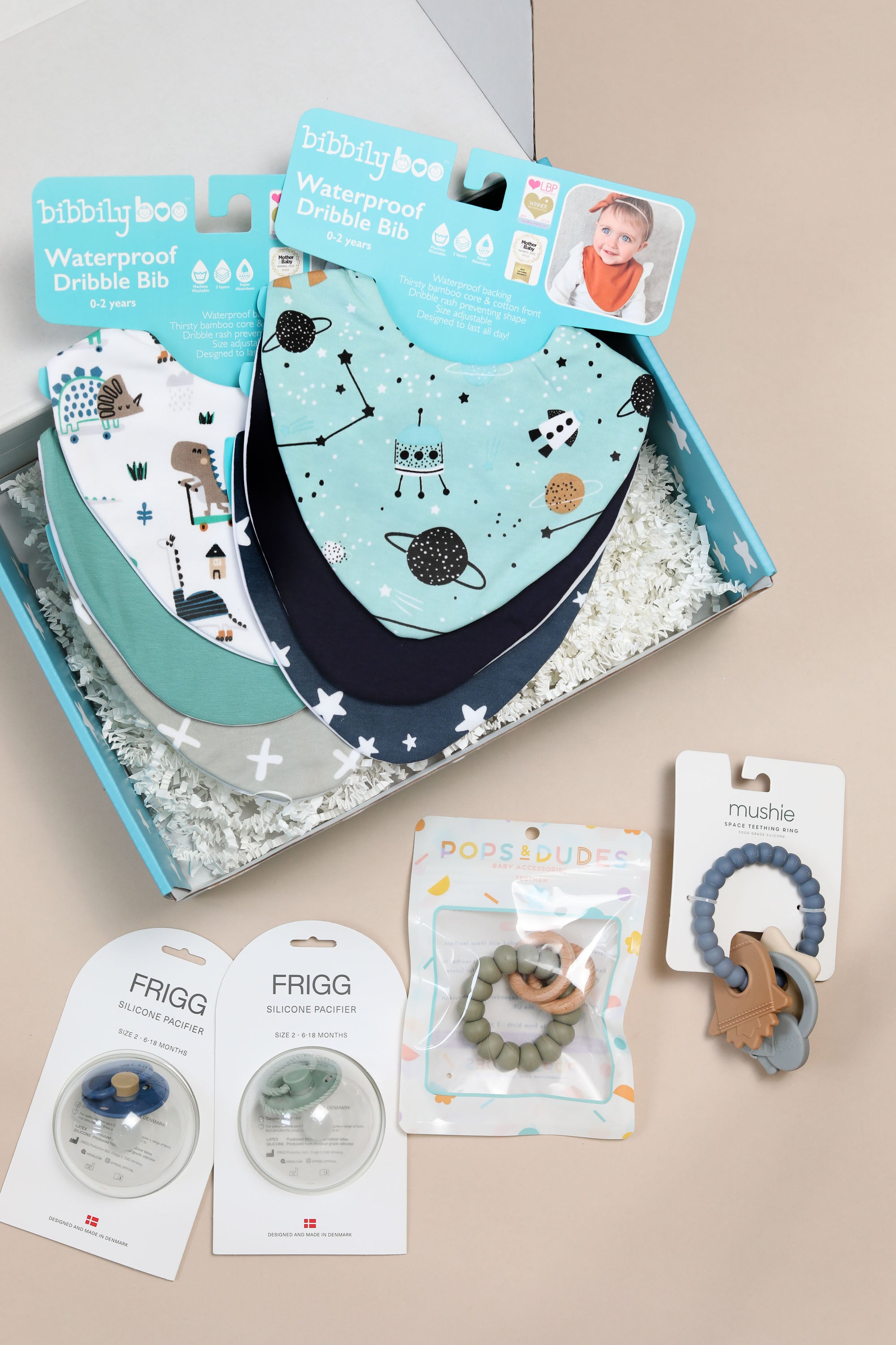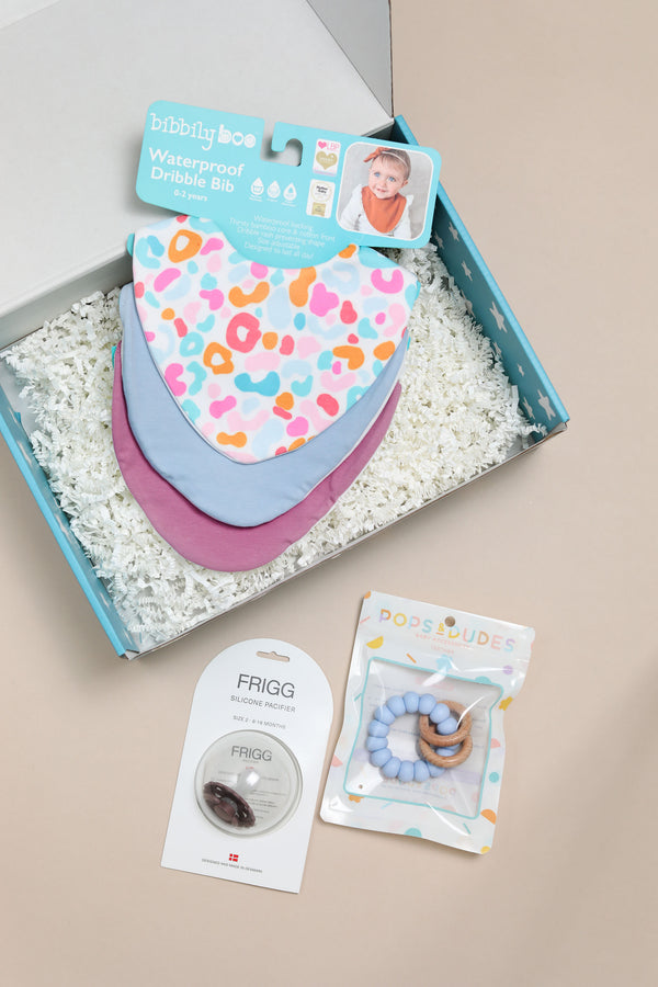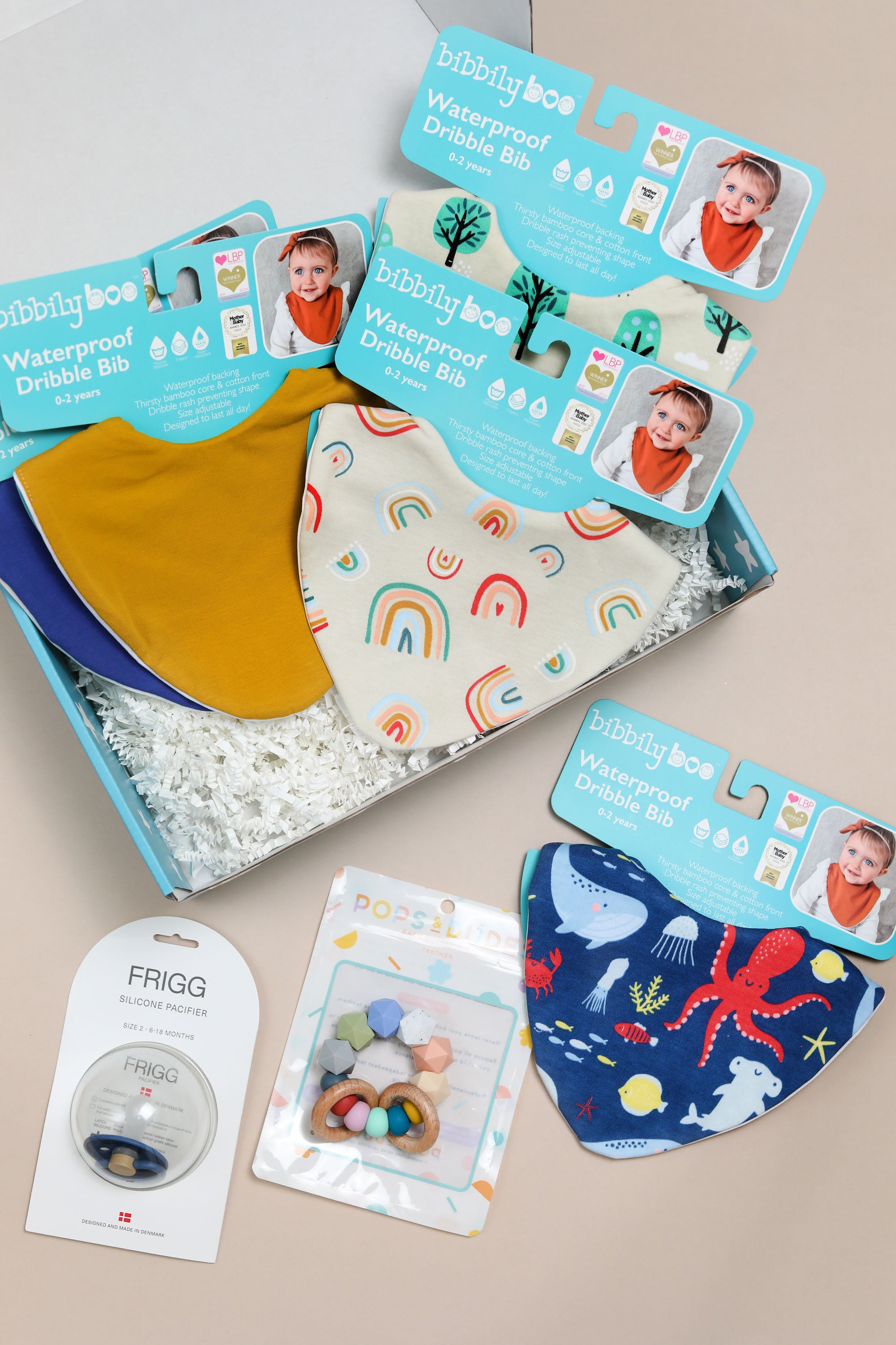 Create unique and practical gifts with our Make Your Own Gift Box! Perfect for teething babies, it includes our award-winning waterproof and highly absorbent bibs, as well as an food grade silicone teether. Plus, enjoy free shipping over £40 and a gift note writing service. (Build-a-box for babies!)