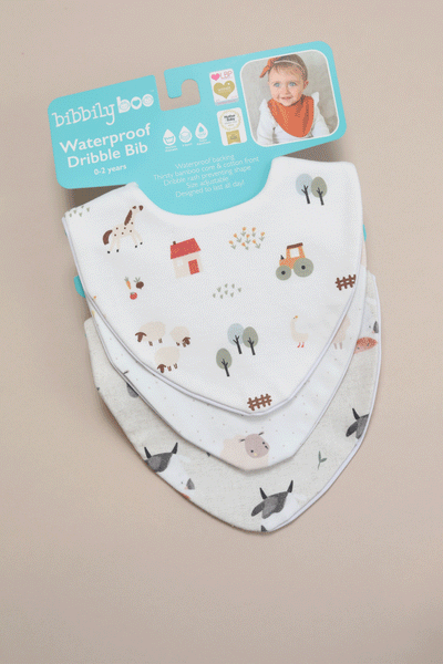 - Avoid wearing dribble bibs when feeding. Our waterproof bibs are designed to tackle teething dribble and we don't advise you wear them during meal times where they may stain. Our feeding bibs are ideal for meal times and can be wiped down after use or washed on 30c.
