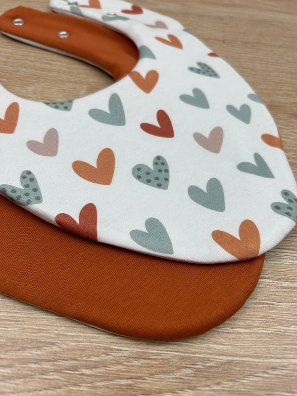 Say goodbye to messy teething with the award-winning Hearts Bib! Designed for babies aged 0-2 years, this waterproof bib features an absorbent bamboo core and cotton top layer to keep your little one dry and comfortable. The adjustable size and anti-dribble rash shape make it perfect for on-the-go use. Plus, the stunning heart pattern in neutral colors adds a touch of style to any outfit. Keep your Baby/Toddler dry and happy with the Hearts Bib!